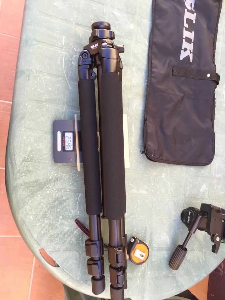 No voy a poner las especificaciones técnicas de cada parte ni del conjunto, una rápida visita a la web oficial de SLIK lo deja todo bien claro, si os pondré las imágenes con metro y pesos en mi báscula propia para que valoreis.