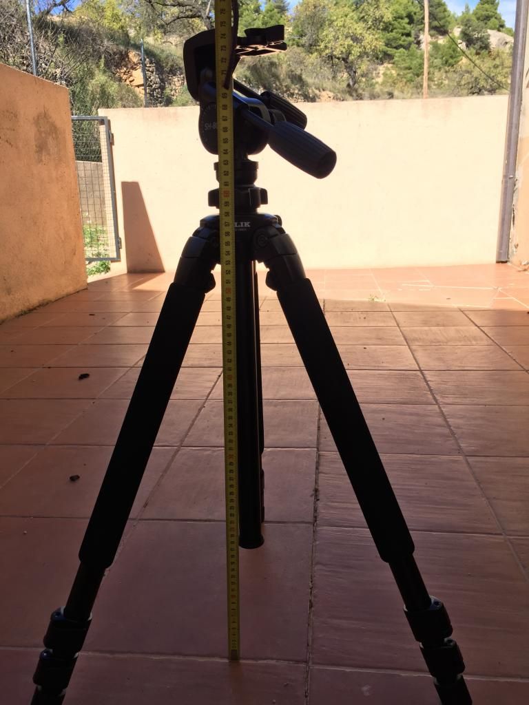 - Tripode desplegado al máximo, ronda los 195cm de altura aproximadamente