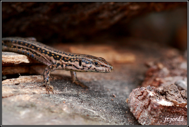 Una de una largatija iberica, se camuflaba entre unos montones de leña