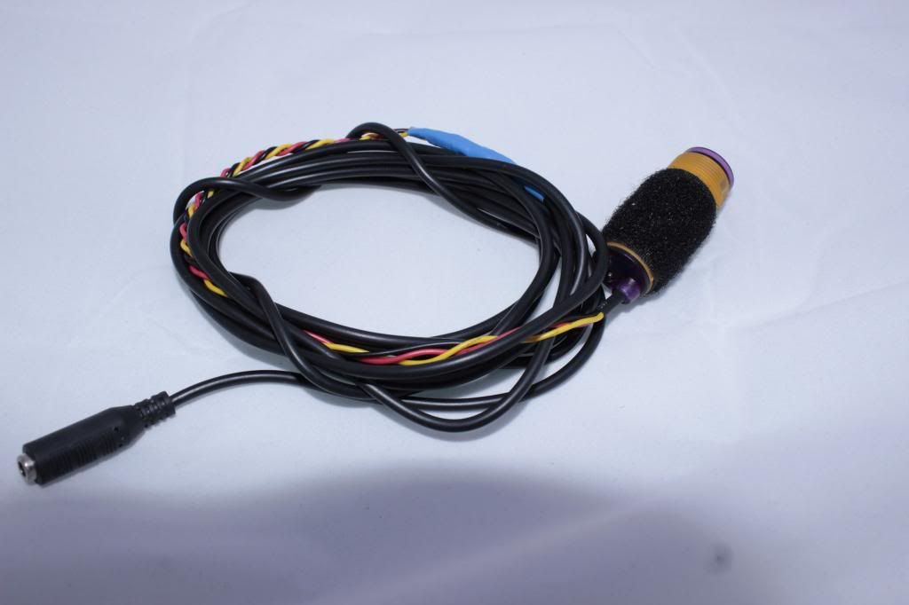 Este sería el sensor de infrarrojos, ya conectado con el cable de audio que va a la caja... Lo he rodeado con velcro para poder sujetarlo más cómodamente...