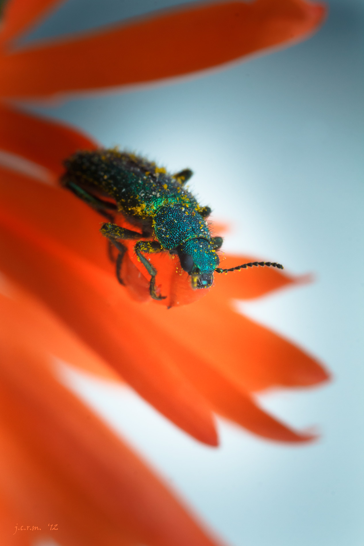 La primavera pasada hice una de este bichito y conseguí identificarlo es "Psilothrix-viridicaeruleus", por mi zona se encuentran colonias a montones, la foto como siempre impecable y espectacular, aún a sabiendas que la voy a cagar voy a hacer una intentona con el Nikon X10 del mismo bicho.