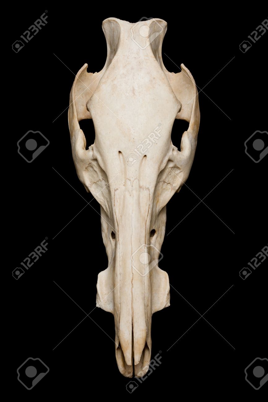 En este dibujo se detallan muy bien las distintas partes e un cráneo equino y sus nombres. Girando 180 grados la foto, encaja perfectamente con el dibujo. De todas formas, reconozco que es mucho más interesante ver la foto tal y como la has puesto tú, tiene una pinta de alienígena que da gusto, jaja!