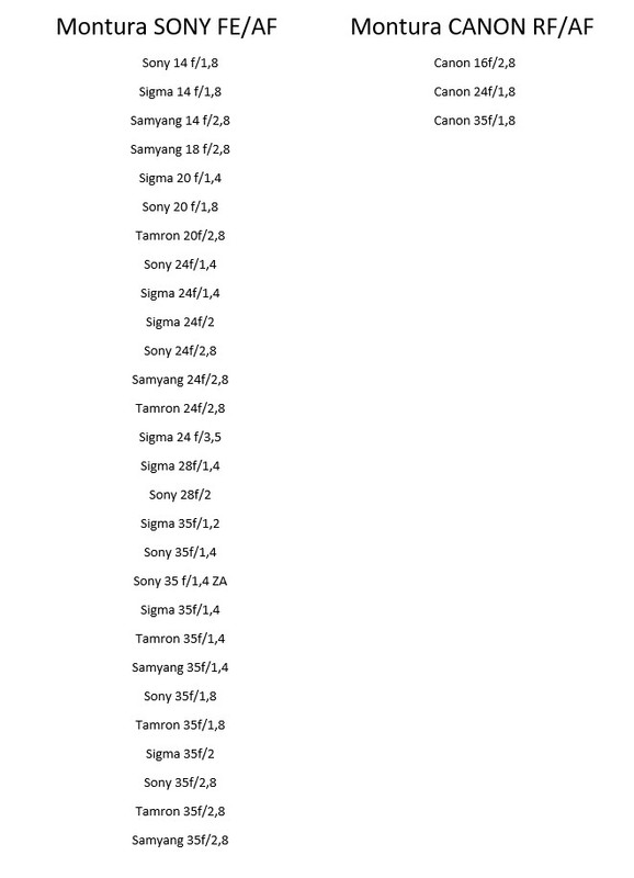 La lista del compañero es lo que hay en montura nativa, si vas a meter adaptadores de montura la lista de Sony será aún más larga que la de Canon.