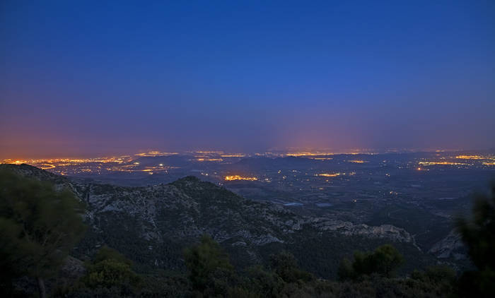 Buenos dias!! Hola Alfonso, me alegro de verte por aquí. Bueno respecto a la luz decir que desde arriba la "calima" que había, hacía en el cielo como un efecto lupa e incrementaba la luz que procedía de los pueblos. Hablando de pueblos, no se como les dejaron, creo que era TIBI, tirar fuegos artificiales el día que más riesgo de incendio había en toda la sierra, demencial, de locos y todos los calificativos que querais, si hubiera pasado algo y con lo dificil que es bajar de allí, no se que hubiera pasado.