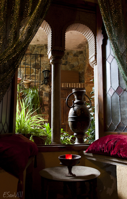 Casa Árabe de Cáceres, una casita de este estilo arquitectónico que aún mantienen tal cual era entonces. Con sus habitaciones, sauna, aljibe y sala del harén, a la que pertenece esta foto.
