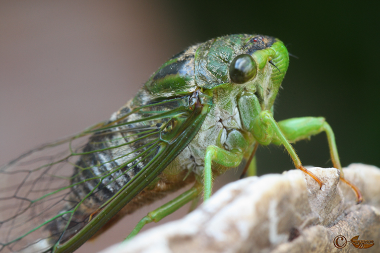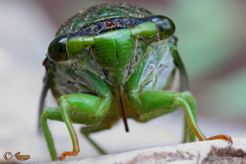 Aca van 2 tomas de una chicharra o cigarra que llama la atencion por su colorido y por los ocelos rojos. Sin flash (por ahora tengo solamente el incorporado (en algun momento vendra el anular).
