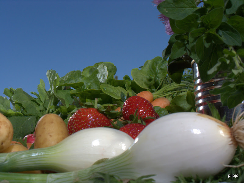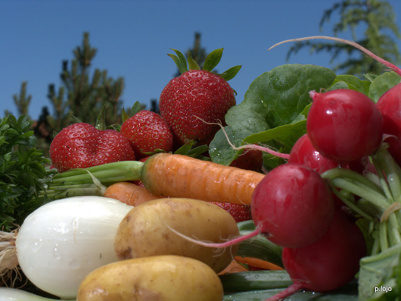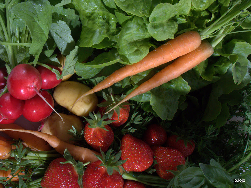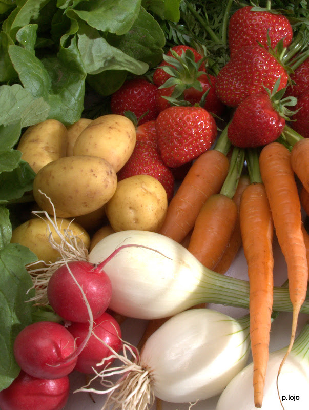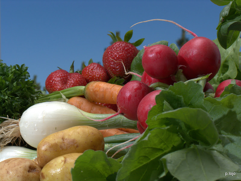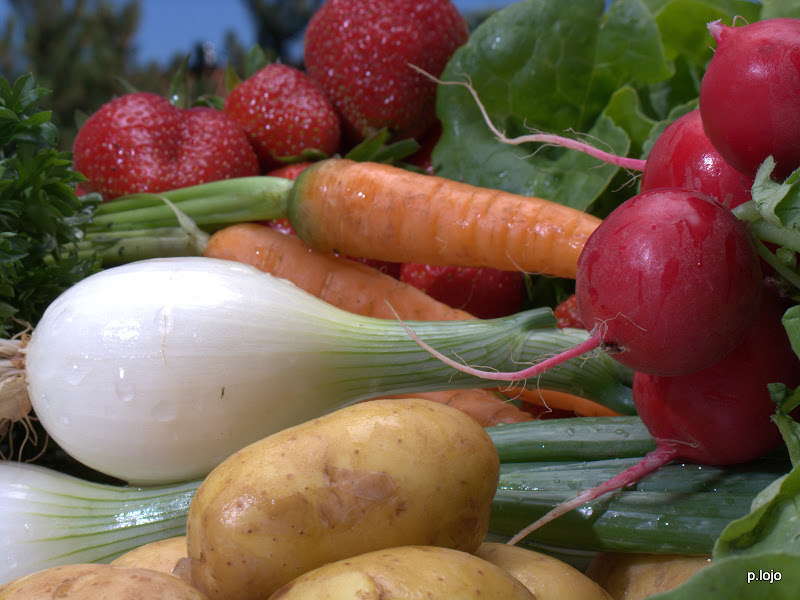 A mi gusto demasiados elementos sin centrarse en ninguno, las fotos ademas son muy planas not tienen sensacion de profundidady los colores se te han quedado un poco apagados, una pena poruqe ganaría Múchisimo, son unas verduras y frutas impresionantes.