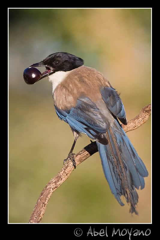 Que bonita foto! precioso el pássaro (que pássaro es eso?) con su fruta, la compo y sobretudo el fundo son una maravilla! me encanta!