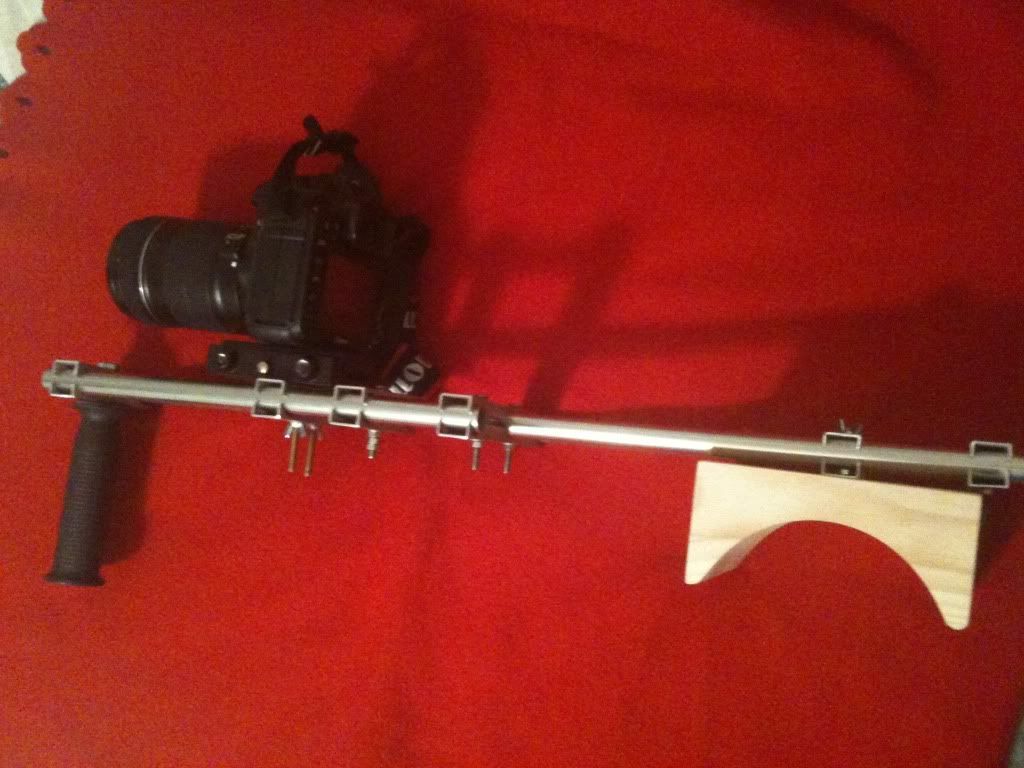 Hola.. e visto tu soporte de hombro para una Dslr , tambien estoy armando uno , pero que es un poco mas armable o sea con piezas que pueden ajustarse en posicion .. pongo unas fotos para que me den una opinion.. lamentablemente no tengo la camara ( no era mia ,pero me interesaba aprender a construir estos artilugios) asi que este soporte de hombro lo tendre un tiempo asi, solo para mirarlo jaja..