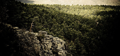 Esta foto la saqué cerca del puerto de Canencia hace un par de meses. Me gustaron las zonas de color causadas por la iluminación de sol, los pinos y el bloque de piedras.