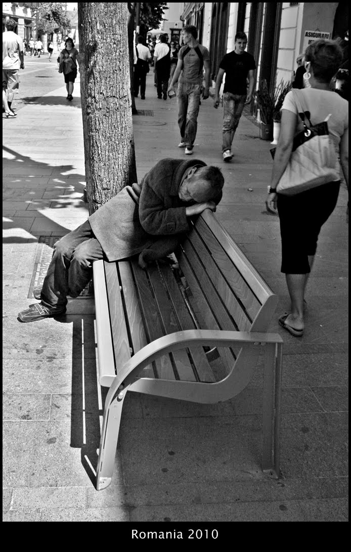 Personalmente me sobra aire por la derecha; no por que no haya nada interesante tras él (además de los intereses que no da), pues hay paseantes, sino porque se me hace extraño verle tan centrado y media imagen mostrando lo que hay por detrás; quizá es que me pide ver más lo que hay en frente del banco que tras él. Creo que un ángulo en el que el banco quedase a la derecha de la imagen habría sido más apropiado (es mi apreciación, que igual me equivoco....).