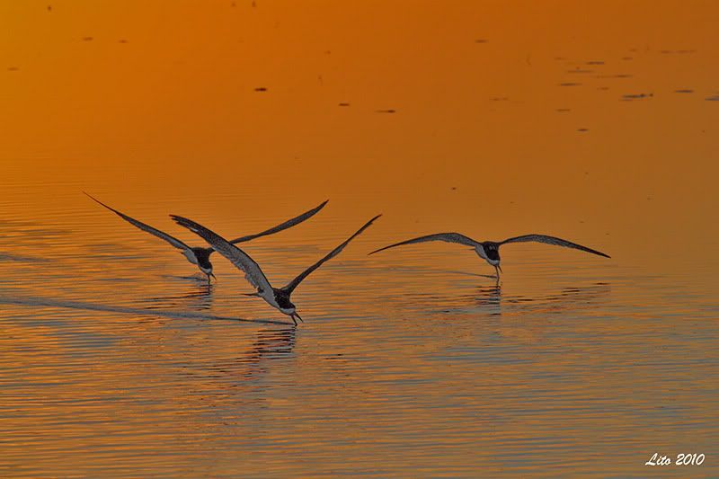 Los rayadores son crespusculares, pescan rayando el agua cuando hay poca luz para que los peces no los vean.