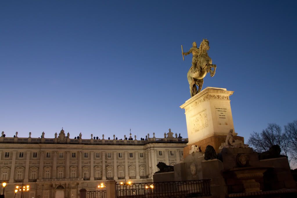 Siempre me ha gustado la historia, sobre todo el inicio de la edad moderna en España, es decir, la llegada de los Austrias. Os dejo estas dos fotos de la estatua de Felipe IV (con el que en el Imperio empezó a ponerse el Sol) en la plaza de Oriente (que, por cierto, tiene la curiosidad de ser la primera sobre dos patas, pues la mitad anterior esta hueca mientras que la mitad posterior está rellena, haciendo de contrapeso). Por ello he hecho varias fotos y os pongo dos, una horizontal y otra vertical, para que me las comentéis(es mi primer Dame Caña, así que sed duros pero magnánimos). Indicaros que la horizontal está hecha buscando la hiperfocal.