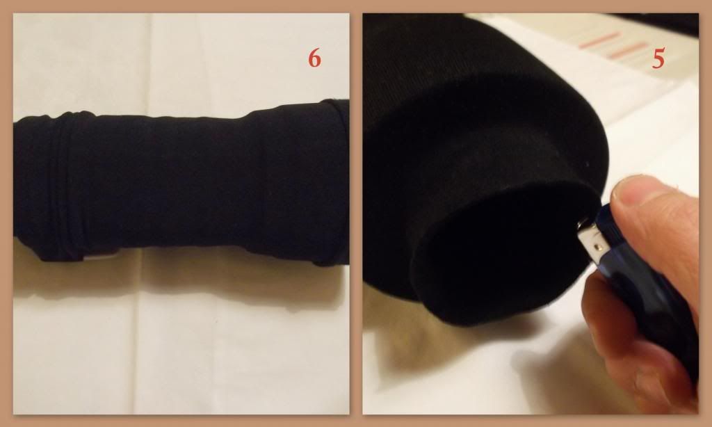 Hecho, entré en un CHino y encontré las medias de rebaja, 1,10€!. No sé si eran las mismas pero se le parecían, son de Licra acolchada y bastante gorditas. En mi caso, preferí no hacerle el agujero para el brazo del anillo pues esto daría problemas cada vez que giremos el objetivo a vertical. Simplemente no hice nada, la media llega hasta el final del objetivo y lo tapa todo salvo la parte trasera del brazo (lógico, al no haber hecho el agujero). Por fortuna, puedo girarlo relativamente suave.