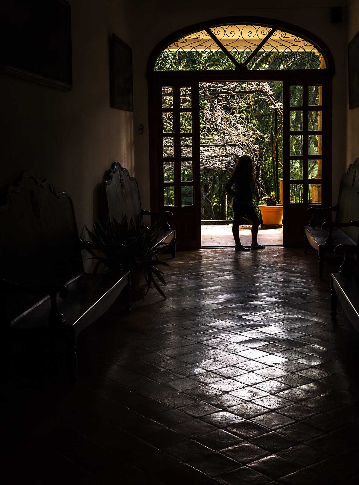 Una foto de muchos contrates. Siluetas negras con bordes blancos que adivinan otros contornos. Más que una silueta con un fondo me parece un entramado de contrastes, aunque la protagonista principal no queda totalmente definida por el fondo. Me pasa un poco como con la foto de Mariloli: me gustaría saber qué está haciendo la modelo.