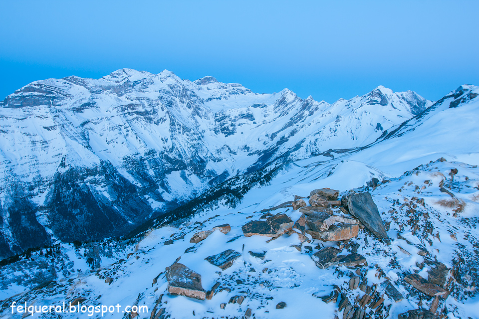 Un paisaje espectacular, pues no había nubes. Llevaba 4 baterias y se me fueron todas. Es cierto que las baterias, aunque estaban cargadas no están en su mejor momento pues ya tienen su tiempo, Solo había unos -6 grados, según mi reloj, aunque había ráfagas de unos 35 o 40 km. con lo que la sensación térmica era muy superior.