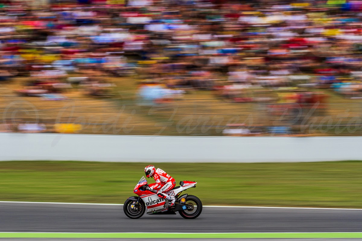 El piloto de la Ducati está en una posición no demasiado estética (seguramente de frenada) y demasiado centrado.