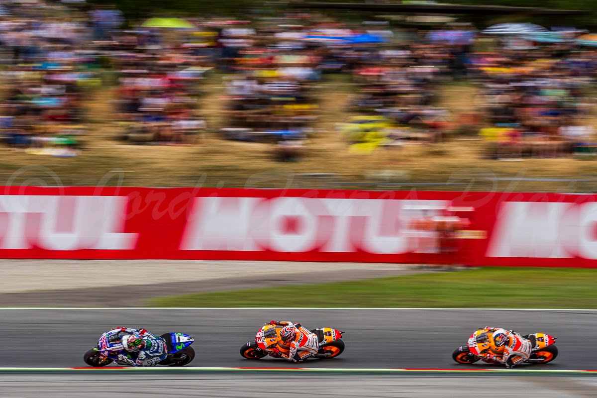 La cuarta es seguramente la mejor, ya que hay una buena distribución de los diferentes planos sin que haya superposición de los distintos elementos; arcén, pista con los 3 motoristas bien repartidos en ella, zona de seguridad, rótulo publicitario, y público bien distribuido; el único pero sería, que la nitidez no se encuentra en el que va delante sino en el del centro, que aunque fuera el que ganó la carrera, la foto exige nitidez en el primero.