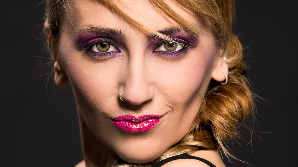 Use un flash con un beauty dish con rejilla bastante frontal y un poco alzado