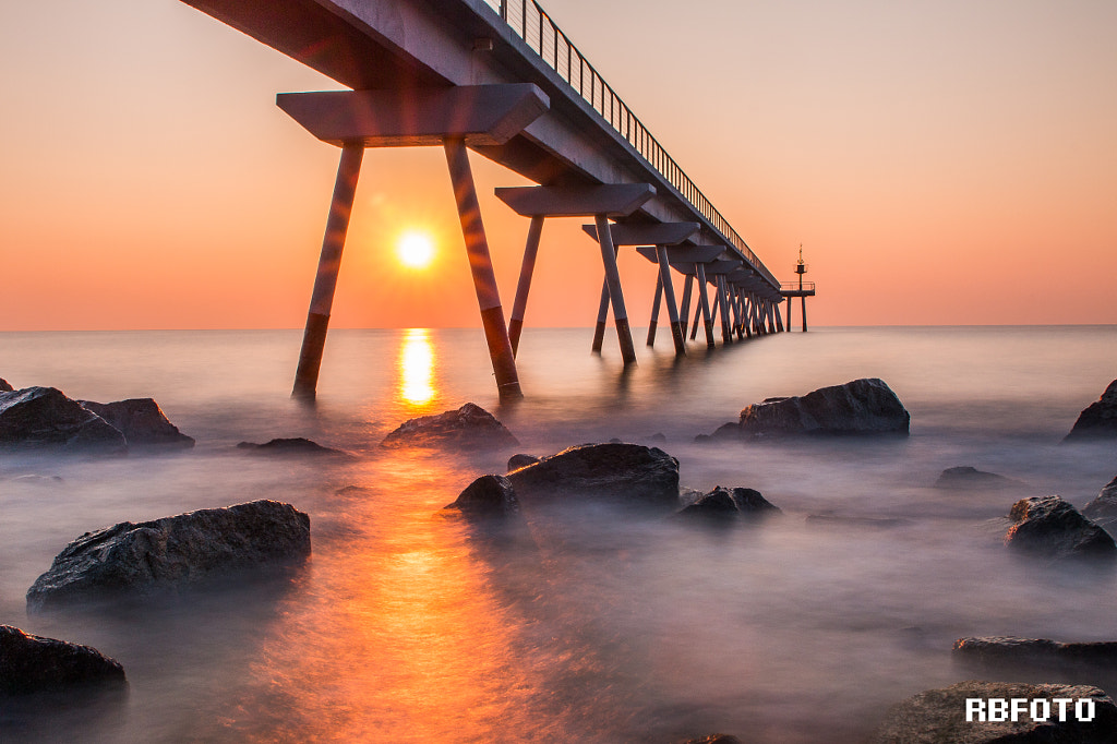 Os subo una foto que hice de un amanecer en el fotografiado un millón de veces pont del petroli de Badalona.