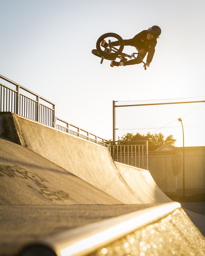 Una gran foto!! Has jugado muy bien con la composición y fantástico contraluz. Las lineas de los elementos aportan profundidad a la toma y los colores muy armónicos. Como pega, quizás esté algo borroso el sujeto principal, veo más nítido las rampas que el propio rider. Respecto a la ISO, no me molesta en absoluto el poco ruido que se aprecia.