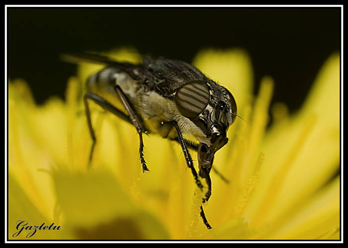 Seguro que era una mosca, no sería un tábano? creo que algunos tienen ojos con esas franjas. Por cierto, unos ojos impresionantes.