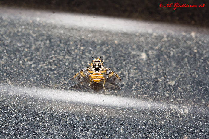 Sí, aunque no lo creáis, la mosca está apoyada en el cristal de una ventana que, evidentemente, no estaba muy limpio. Además, como ya había anochecido, salió con ese tono gris. Bueno, espero vuestros comentarios. Saludos.